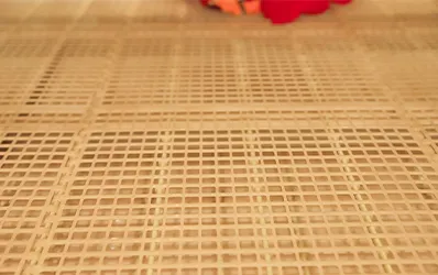 Better broiler welfare – PP flexible floor and proper lighting protect skin and help birds find feed and water easily.